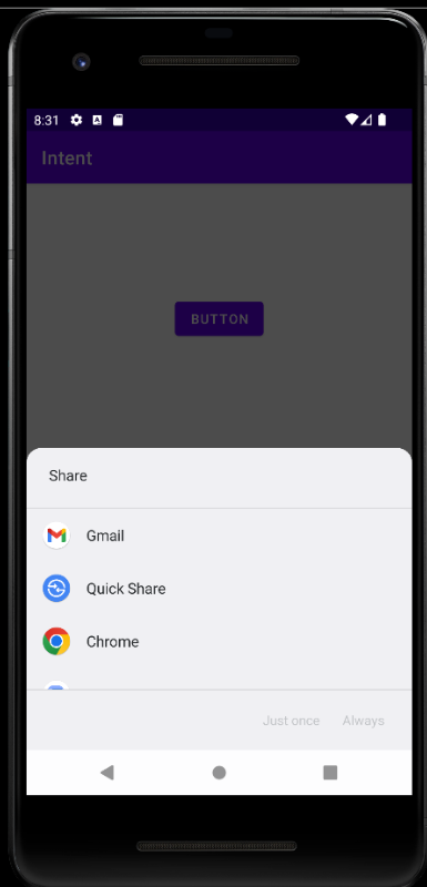 Intent shareIntent = Intent.createChooser(intent, "선택하세요");