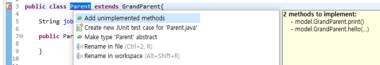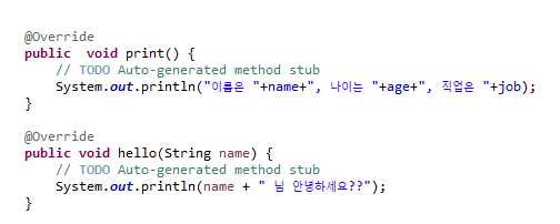 그래서 이렇게 상속하는 쪽에서의 print 함수를 super.print() 라고 사용한다면