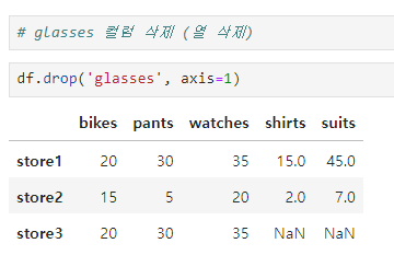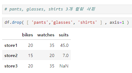 drop( ) 함수를 이용하고, axis만 설정해주면 된다.