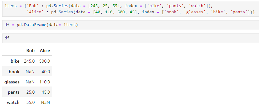 .DataFrame( ) 은 2개 이상의 시리즈가 모여 만들어지는