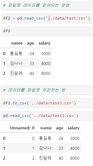 저장은 .to_csv( ) 이며 괄호에 파일 경로를 따로 적지 않으면 해당환경과 같은 장소에 저장된다