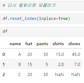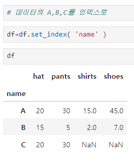 .set_index('콜럼') 으로 인덱스로 집어넣을수도