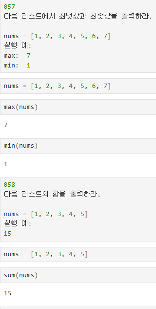 최대값, 최소값 그리고 리스트의 총합 구하기