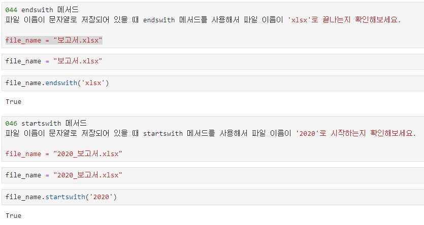 .endswith()는 이 문자열로 끝나는지 확인하는 기능,